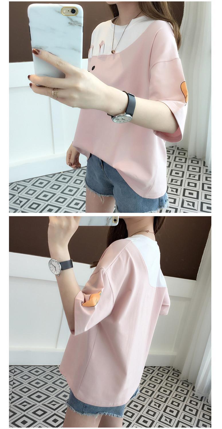 Summer new T-shirt embroidery rabbit Korean color matching top loose short sleeve women's wear